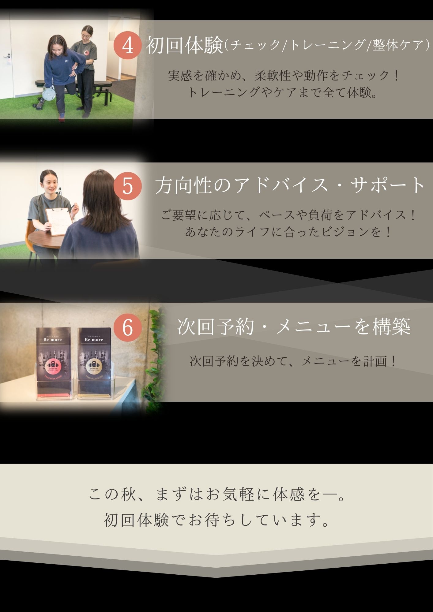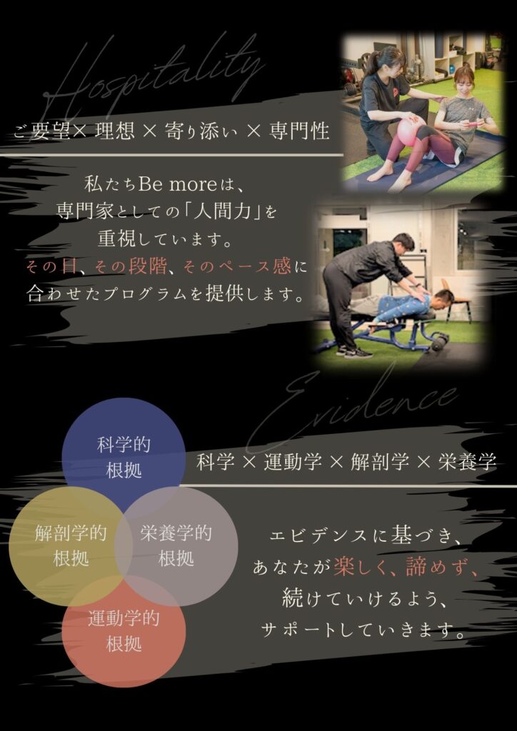 に投稿されました ああ Trustindex は、レビューの元のソースが Google であることを確認します。 いつもわかりやすく優しく教えて頂き、だんだん痩せてきたのでモチベーションがあがりました!これからもよろしくお願いします! に投稿されました りん Trustindex は、レビューの元のソースが Google であることを確認します。 年齢的にもハードなトレーニングというより筋力強化と体調管理を目的に通っているので無理のない筋トレが心地良いです。確実に出来ることが増えてきて毎週楽しみに通っています。毎週メニューが変わるのも良き!またトレーニング後のメンテナンスで癒されて1週間の疲れをリセット出来ています。駐車スペースが助かってます。 に投稿されました Takeda Vivienne Trustindex は、レビューの元のソースが Google であることを確認します。 10月から通い始めて11回目!! 我ながら『頑張ってるな💪』と言う、実感。 日に日に身体の動きがスムーズになり快適です︎💕 女性トレーナー『かなさん👧🏻💞』は、女性目線で的確にその人の弱い所を指摘し、具体的な指導が素晴らしい👏 『褒めて伸ばす』的な、やる気にさせるかなさんです💗 に投稿されました 佐々木玲奈 Trustindex は、レビューの元のソースが Google であることを確認します。 パーソナルトレーニングに通っています。 トレーニングだけでなく、女性のトレーナーが体のあれこれを丁寧に教えてくれるのでとても勉強になります。 長く通いたいです に投稿されました れよ Trustindex は、レビューの元のソースが Google であることを確認します。 夫婦ともにインドア派で、運動不足により体型が気になっていました。夫婦で一緒に通えるので、家でもトレーニングの振り返りがお互いにできます! トレーナーさんもとても優しく、アドバイスや励ましてくださるので、やる気が出るし、楽しいお話をしながらのトレーニングはキツさも感じにくくさせてもらえます。 今は大宮店にいるトレーナーさんが麻布店に移動になるそうです。正直、トレーナーさんがとてもよいので、通えるのであれば麻布店まで通いたいくらいです笑 に投稿されました はる Trustindex は、レビューの元のソースが Google であることを確認します。 自由が丘店で土倉さんに担当していただいています。 トレーニングは丁寧でわかりやすく、休憩タイムのお話も楽しいのでつい話しすぎてしまいます。 今は月4回で通っていて、土倉さんの話しやすい雰囲気のおかげで無理なく続けられています^ ^ 運動後のケアではいつも仕事でパンパンになった足のむくみをとってもらってます。 性格的に1人では運動は続かないと思うので、このジムを見つけられてよかったなと思っています もっと読み込む -Be more Movie-▼ be_more.azabu ✨カラダを"根本"から変えるパーソナルジム✨ 赤羽橋駅から徒歩1分! 📍)国内・海外合わせて10店舗! 👶🏻)お子様連れ♪大歓迎 🚗)駐車場完備 🧘🏻♀️)女性トレーナー・全スタッフ医療国家資格保有者 辛い腰痛や肩凝りの改善にも! --- 初回体験の予約はHPかLINEから🔻 さらに読み込む Instagram でフォロー TRAINER ACCESS パーソナルジム Bemore / 麻布店 〒106-0044東京都港区東麻布1丁目 28-5-1階 営業時間平日:9:00〜20:00土日:8:00〜17:00祝日:8:00〜13:00定休日:水曜日 ○東京メトロ南北線 麻布十番駅 徒歩5分○都営地下鉄大江戸線 麻布十番駅 徒歩5分○都営地下鉄大江戸線 赤羽橋駅 徒歩1分 Tel.03-3587-1480 運営元:株式会社Be ambitious